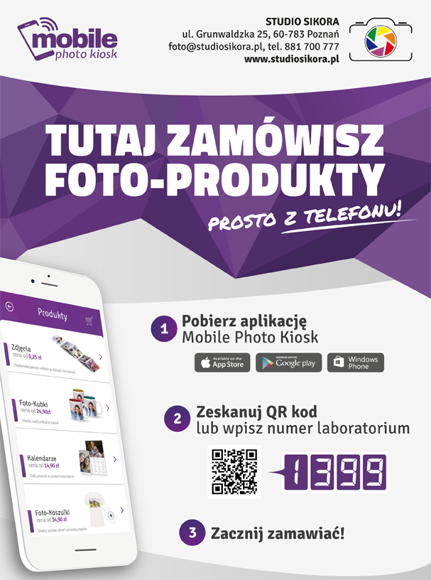 W dniu 19.04.2021 usługa Mobile Photo Kiosk przestanie działać, zapraszamy do naszego nowego systemu zamawiania zdjęć, więcej informacji tutaj: https://www.studiosikora.pl/aktualnosci/87-nowy-system-zamawiania-zdjec.html