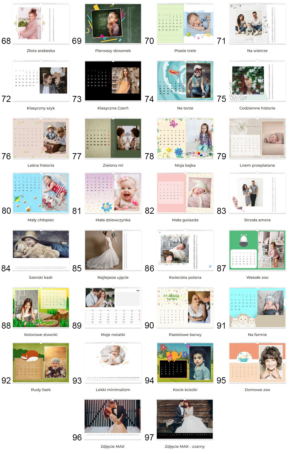Poniżej projekty graficzne dostępne dla kalendarzy BASIC A3 POZIOM.