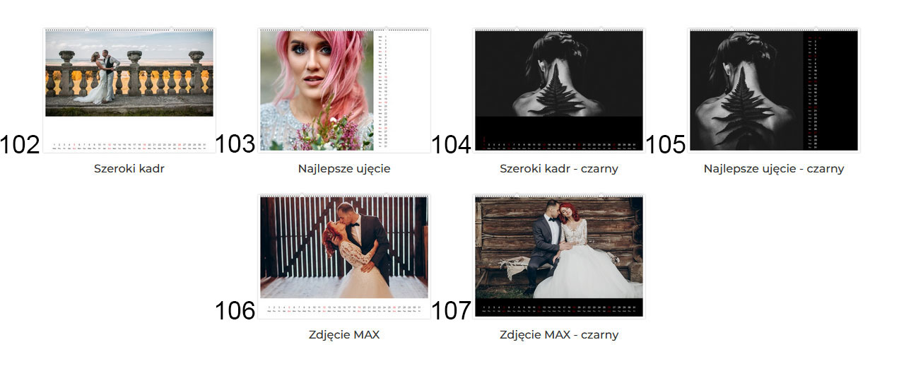 Poniżej projekty graficzne dostępne dla kalendarzy PRO B2 POZIOM.